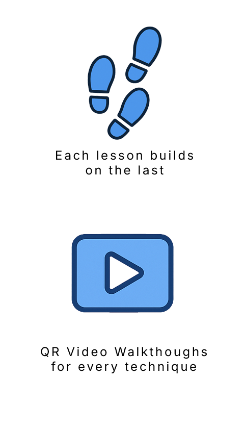 Almost every page has a QR code. Just scan it with your phone or tablet and you’ll go straight to a video where I walk you through the lesson.